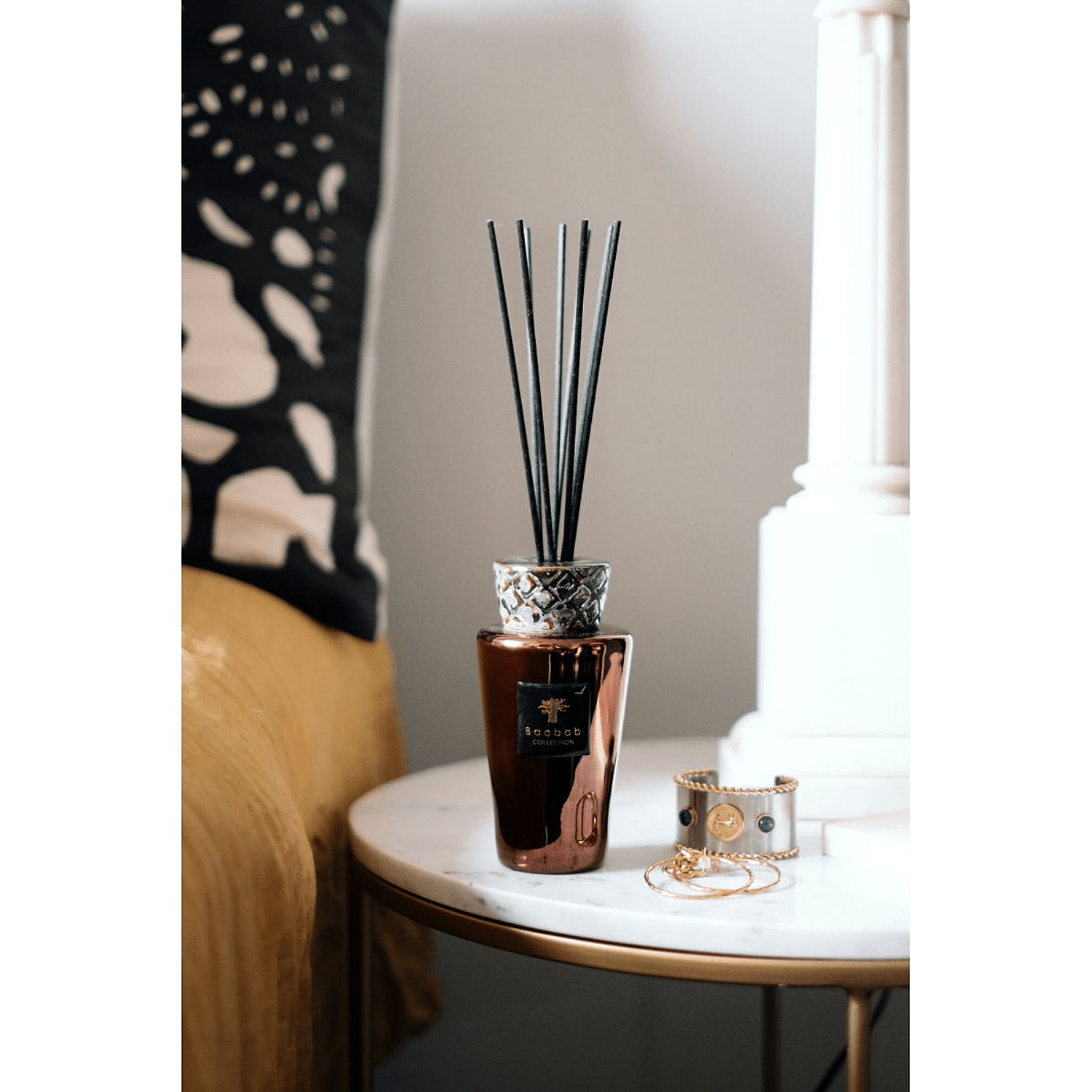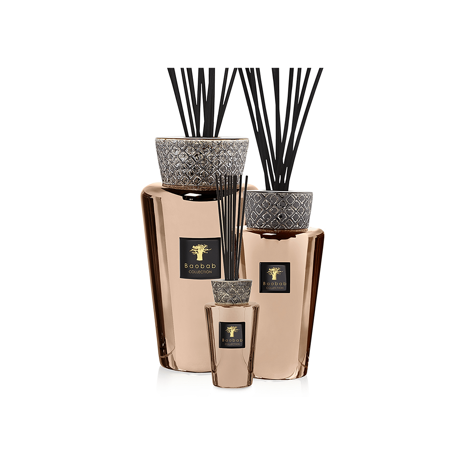 Totem Cyprium geurverspreiders passen op een statige manier naast de Totem Aurum en Platinum. Het ontwerp van hun keramische stop is het gemeenschappelijk punt van deze nieuwe versie met zijn schitterende koperkleur. Ze zijn verkrijgbaar in 5 l, 2 l en Mini Totem en een verfijnd sierstuk voor uw interieur.